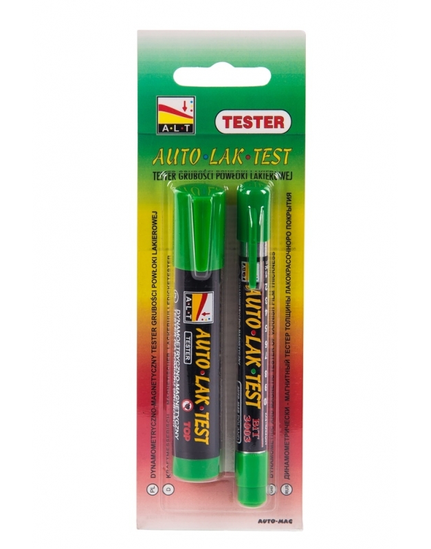 BIT-3003 do sprawdzania grubości lakieru samochodu. Jest to jeden z najbardziej rozpoznawalnych testerów magnetycznych firmy AUTO-MAG, prosty w obsłudze, niewielki koszt poniesiony przy zakupie testera, precyzja pomiaru porównywalna do testerów elektronicznych. Prezentowany w programach motoryzacyjnych. Miernik w aluminiowej obudowie z magnesem pokrytym teflonem.