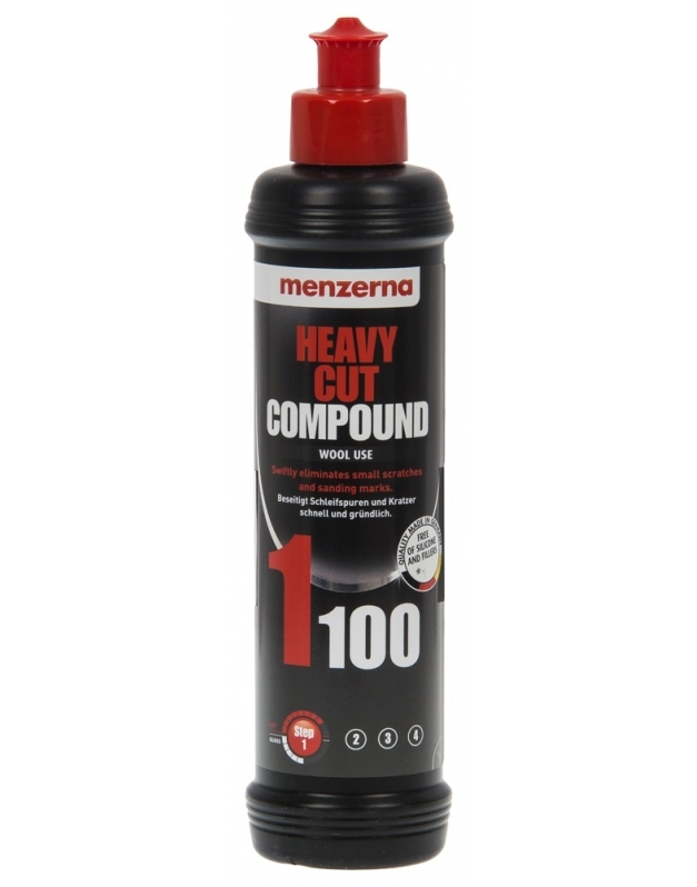Prezentowana pasta polerska HEAVY CUT COMPOUND 1100 o granulacji 1100 stosuje się do wszystkich lakierów samochodowych. Usuwa ślady polerowania,małe rysy,stosuje się głównie w pierwszej fazie polerowania lub po użyciu pastami bardziej ścieralnymi np.400,1000.