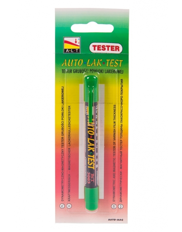 Tester AUTO-LAK-TEST Bit 3003 z magnesem pokrytym teflonem jest produkowany przez Naszą firmę i jest całkowicie naszym produktem . Nasze testery są owocem kilkuletnich prób i badań , aby były dokładne i bezawaryjne przez wiele lat . Były poddawane wielokrotnym modyfikacjom i zmianom. Prace nad udoskonalaniem naszych mierników trwają do dzisiaj i każdy nowy model ma udoskonalenia niewidoczne na pierwszy rzut oka, każdy klient w Polsce otrzymuje taki sam produkt jaki wysyłamy na eksport . Każdy tester jest kalibrowany i sprawdzany elektronicznie podczas produkcji . Posiada kolorową skalę w mikronach naniesioną na zewnętrzną część testera , która bardzo ułatwia odczyt grubości lakieru lub szpachli , nawet tym , którzy pierwszy raz mają do czynienia ze sprawdzaniem samochodu .